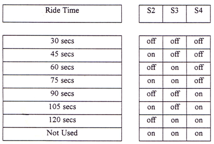 The time control mechanism is accessed by the removal of the grill as described above and can be adjusted as to ride time according to the switch setting as illustrated below. |